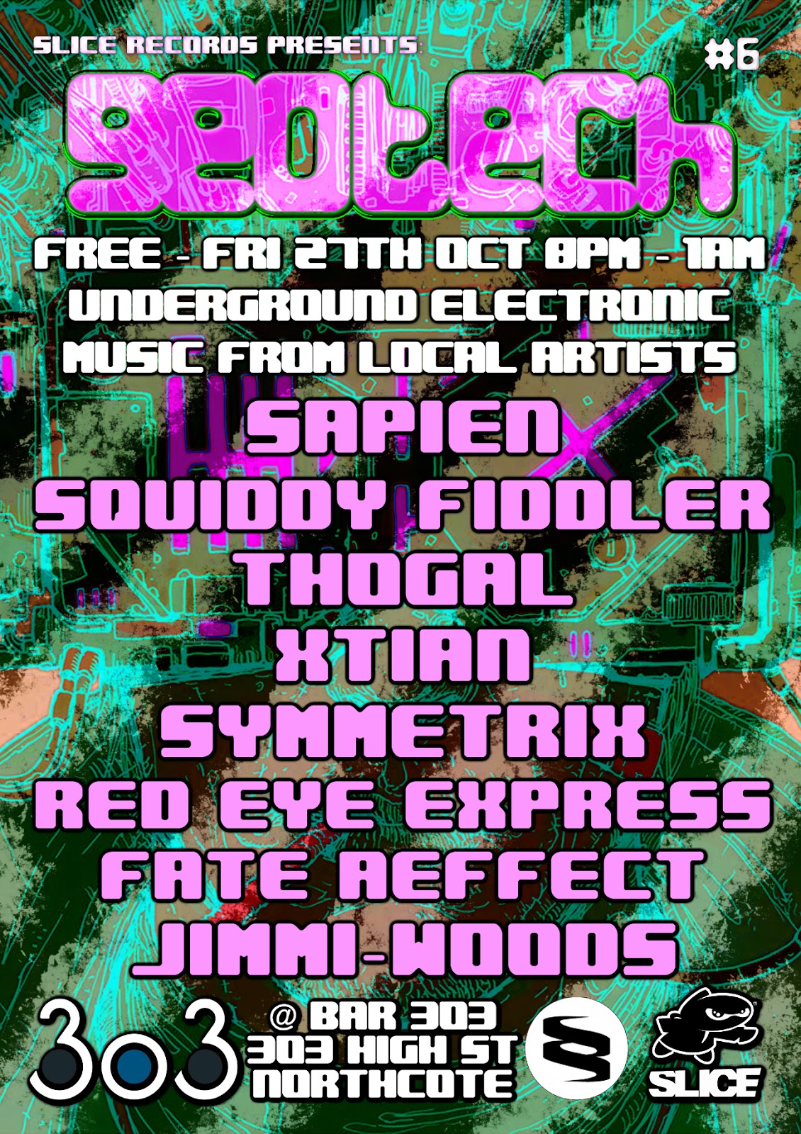 Slice Records focuses on underground electronic artists, with the label featuring an array of diverse acts across the multi-faceted genre. The label also shines a light on graphic designers and visual artists. Slice Records have now set their sights on creating events to combine these two elements and provide exposure for local talent.